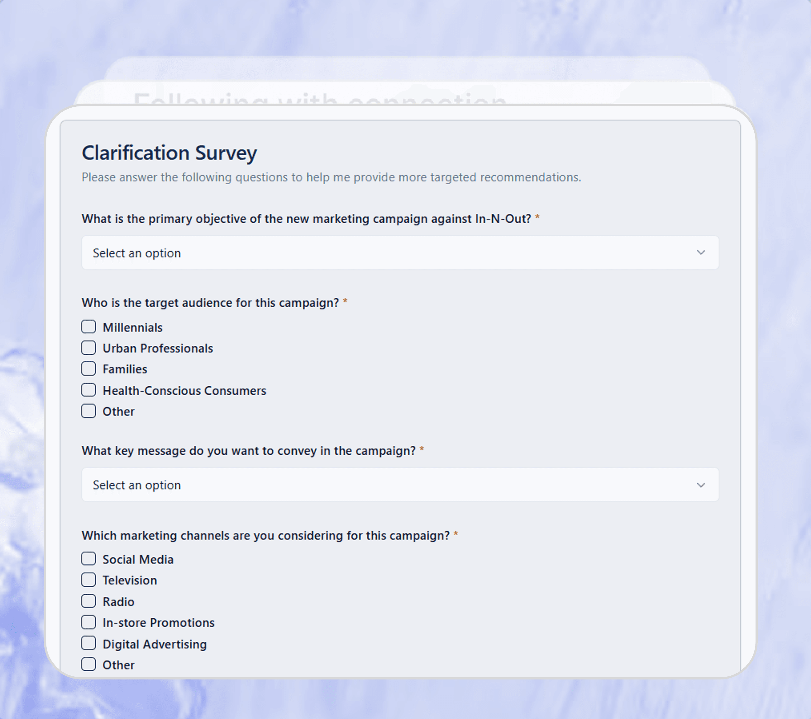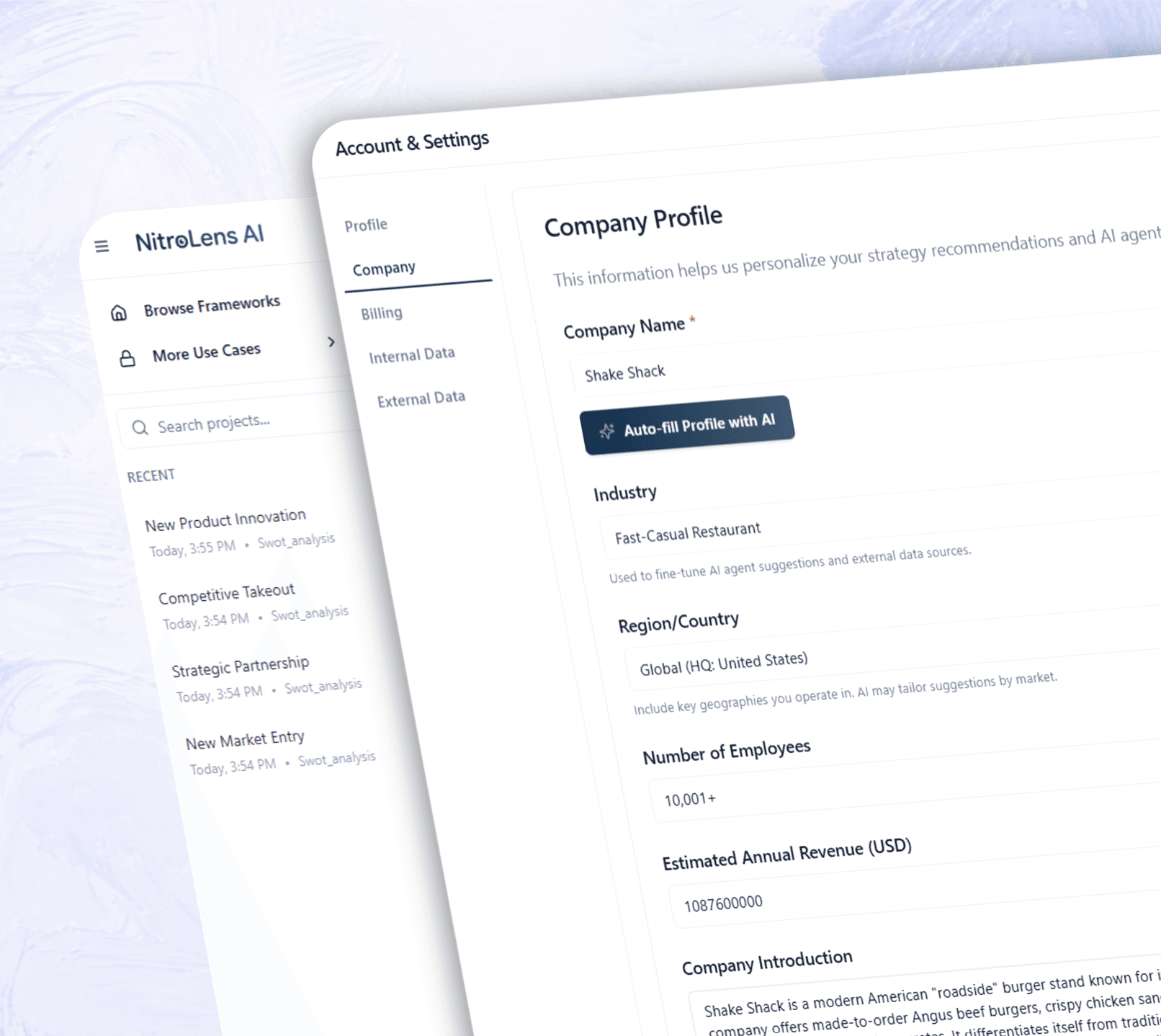 Share your company, role, priorities, and constraints. Agents learn this context and reflect it in every conversation, analysis, and recommendation